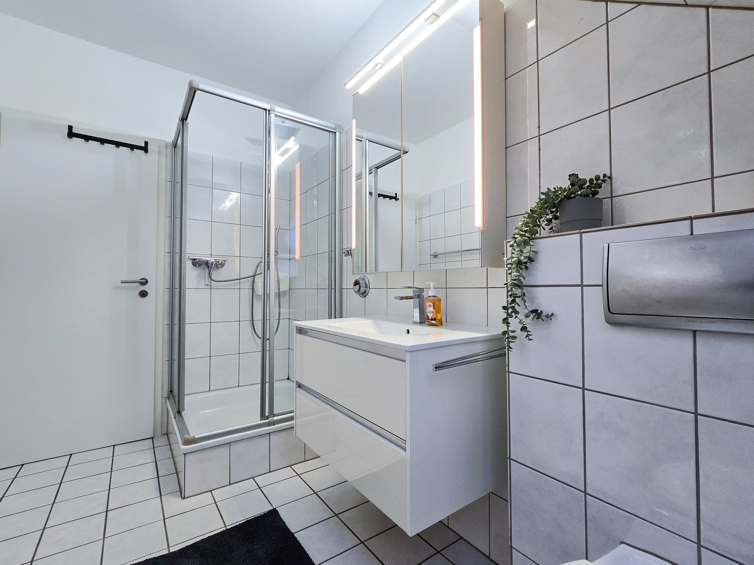 - Bad & Wäsche: Funktionales Badezimmer mit Dusche. Eine eigene Waschmaschine in der Wohnung steht Ihnen für Ihre Wäsche zur Verfügung.