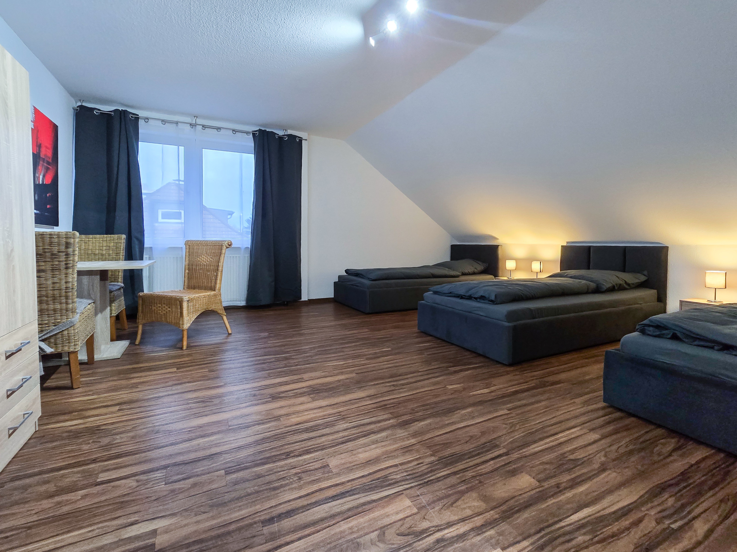 - Für Montagetrupps & Geschäftsreisende: Die Aufteilung in zwei separate Schlafzimmer mit jeweils drei Einzelbetten sowie Arbeitsmöglichkeiten (Tisch & Stuhl) in jedem Zimmer macht diese Unterkunft zur idealen Basis für produktives Arbeiten und erholsame Nächte.