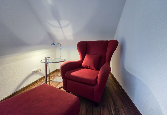 Auf großzügigen 79 m² entfaltet sich im 2. Obergeschoss eine helle und funktionale Wohlfühlatmosphäre. Das Apartment ist über das Treppenhaus erreichbar. Jedes der zwei Schlafzimmer ist als eigener Rückzugsort konzipiert und mit drei komfortablen Einzelbetten sowie Sitzmöglichkeiten ausgestattet. Der eigene Balkon lädt dazu ein, den Tag entspannt an der frischen Luft ausklingen zu lassen.